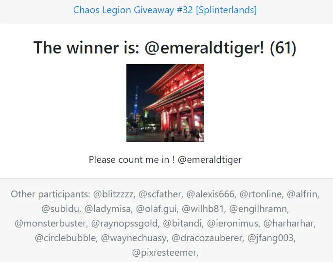 Welcome to my Splinterlands Chaos Legion Giveaway.