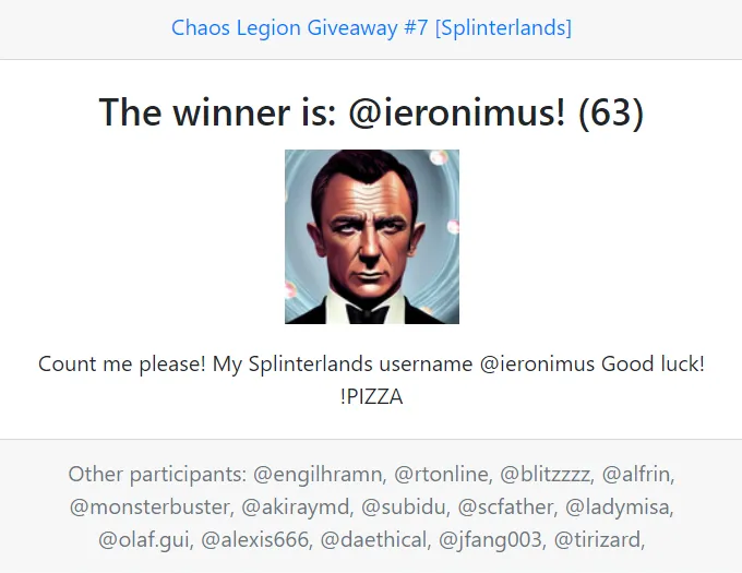 Welcome to my Splinterlands Chaos Legion Giveaway.