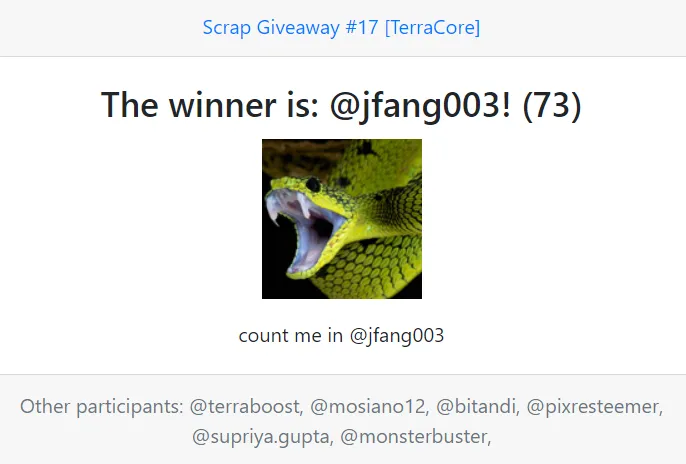 The winner will be announced in the next Giveaway.