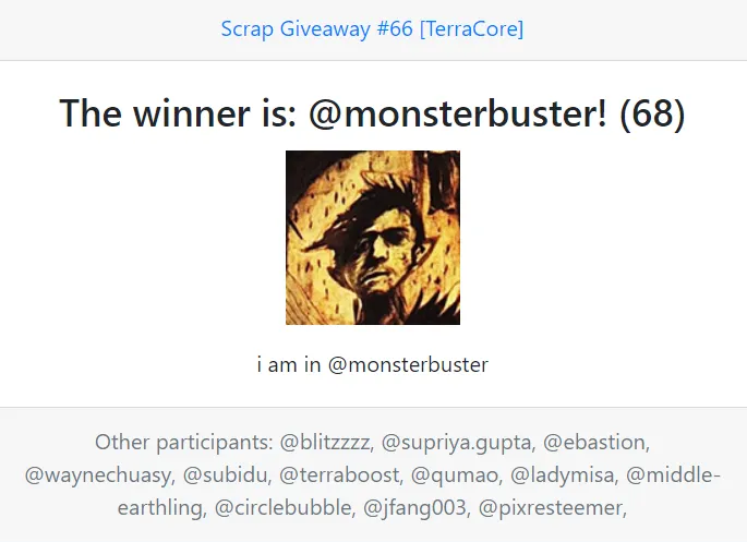 The winner will be announced in the next Giveaway.
