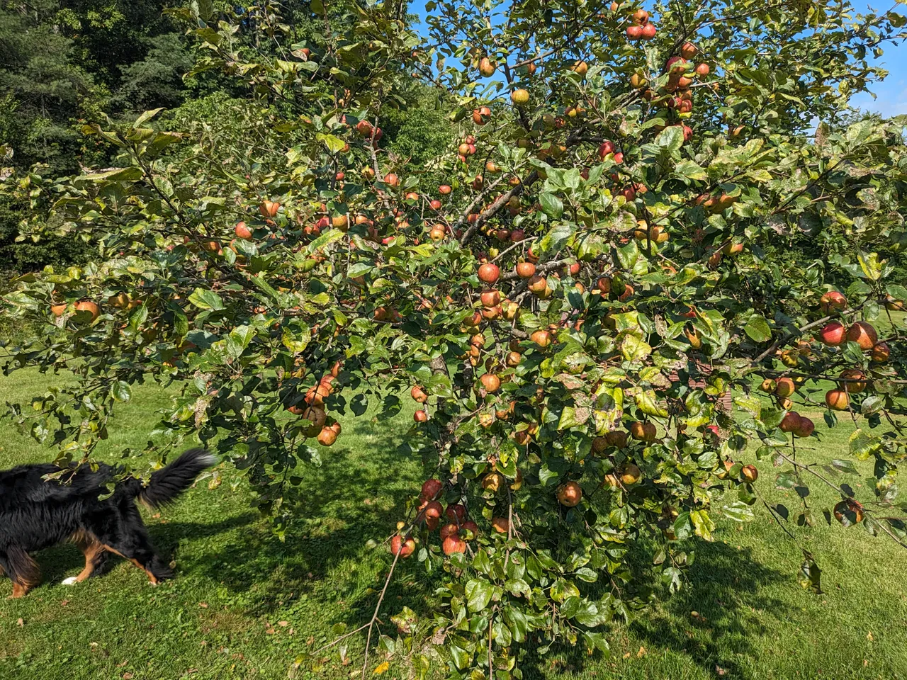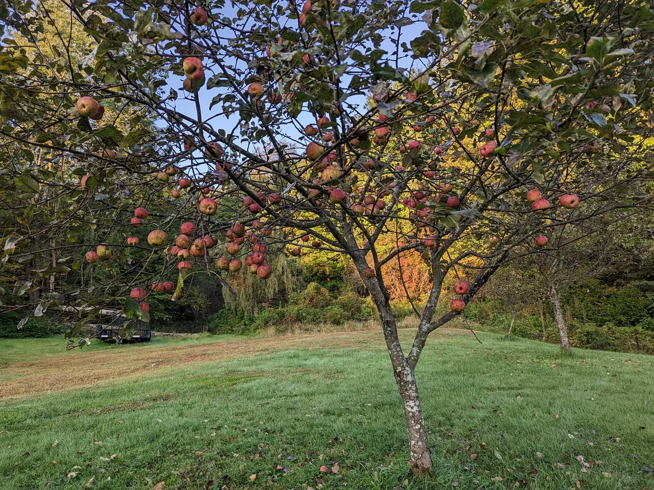 The Apple trees have now lost most of their leaves and actually now most of their apples as well. This was from 2 weeks ago. Only about 5 apples still hanging now. We picked some for snacking and pies, and the rest are for the deer.