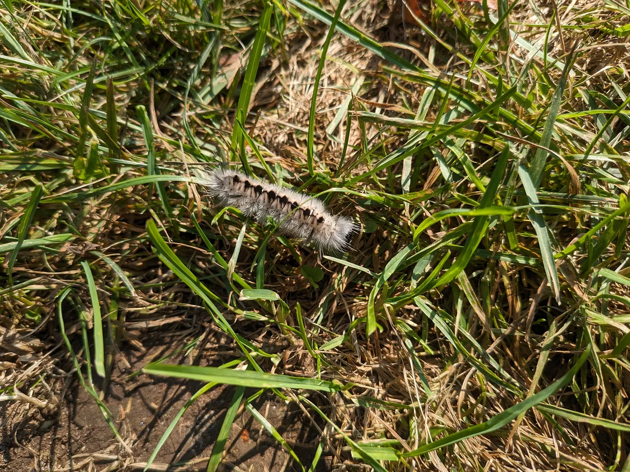 And then we have these white, hairy caterpillars. We've always called them "woolly buggers". We used to see them with varied levels of brown and black, and try to judge the harshness of the winter by how much brown and how much black. What would a white one mean??? Yikes! A little research shows that this is a Hickory Tussock Moth Caterpillar and will turn into a moth at some point.