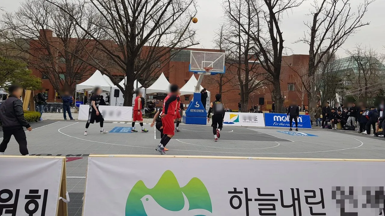 가는 날도 많은 젊은 사람들이 모여서 스트리트 바스켓볼 ( street basketball )인 길거리 농구를 하고 있습니다. 잠시 지켜보는데 재미 있습니다.