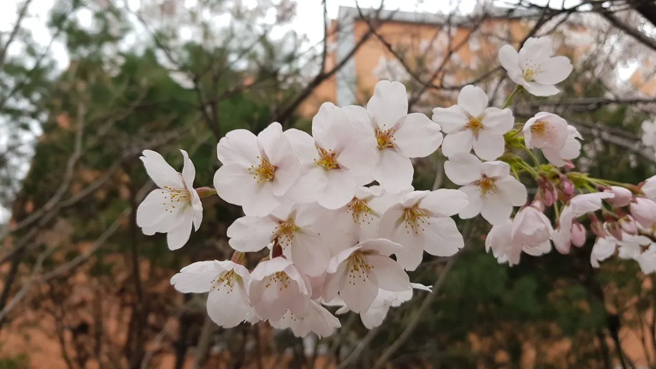 삼형제 극장 앞에는 벗꽃이 활짝 피웠습니다.