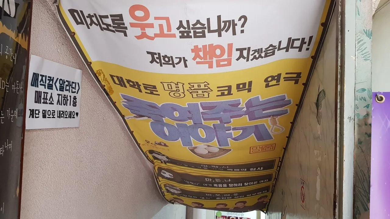 대학로 명품 코믹연극 『죽여주는 이야기』라고 합니다.
