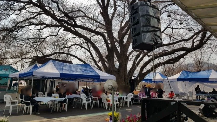 족히 몇백년은 되어 보이는 느티나무 아래에 축제장이 있습니다.