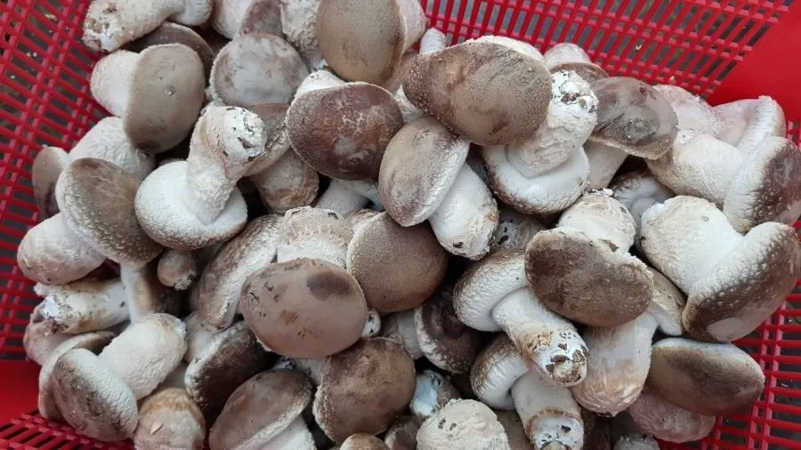 표고는 대가 찔겨 주로 갓을 식용으로 사용하지만 송화버섯은 갓과 대(줄기) 모두 부드럽고 식감이 좋습니다.