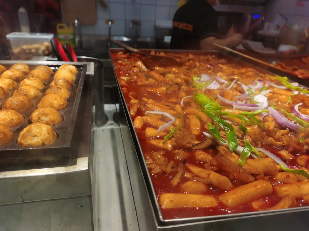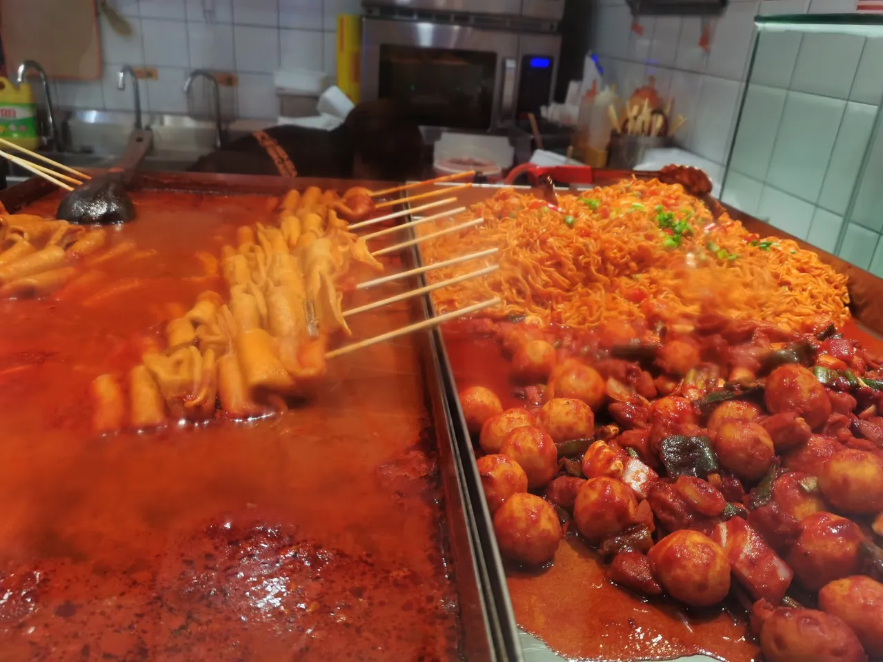 我拿着饮料又继续找美食去,哇塞,这也太诱人了,有烤小丸子,还有炒面,以及海鲜混合烤物,豆腐面筋串串,还有那一串串香肠啊啊啊,我看着这一大盘摆在我面前啊,属实好考验我的定性,其实这会肚子一点也不饿,因为晚上吃饱饱的,还没等服务员开口问,我拍了照,就赶紧开溜,因为怕自己多看两眼,估计就直接买它个三五份回去了,这个点再吃东西,就是夜宵啦哈,可不能再破戒了,过过眼瘾就OK了.