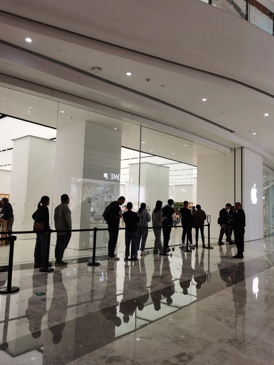 等到了朋友,我们来苹果商店门口,一看咋回事,还要排队啊,又不是什么新品发布会,这一天天的,朋友要换购新苹果以及台式电脑,只是看到这队伍排的,有点脑壳疼,她也不喜欢排队的人,我们商量着先去逛逛,然后晚点再来逛苹果商店.