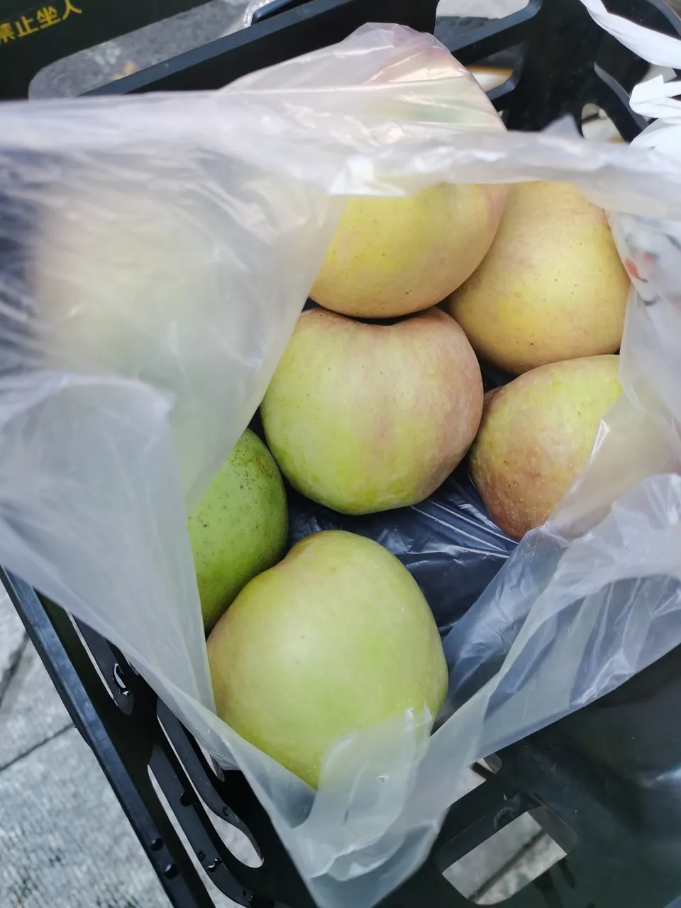 朋友犒劳的一袋自家种的苹果,这种苹果虽然没有红富士苹果来的脆口,吃起来有点粉,甜中带点微微酸,口感也还不错,主要是朋友的一点心意嘛.