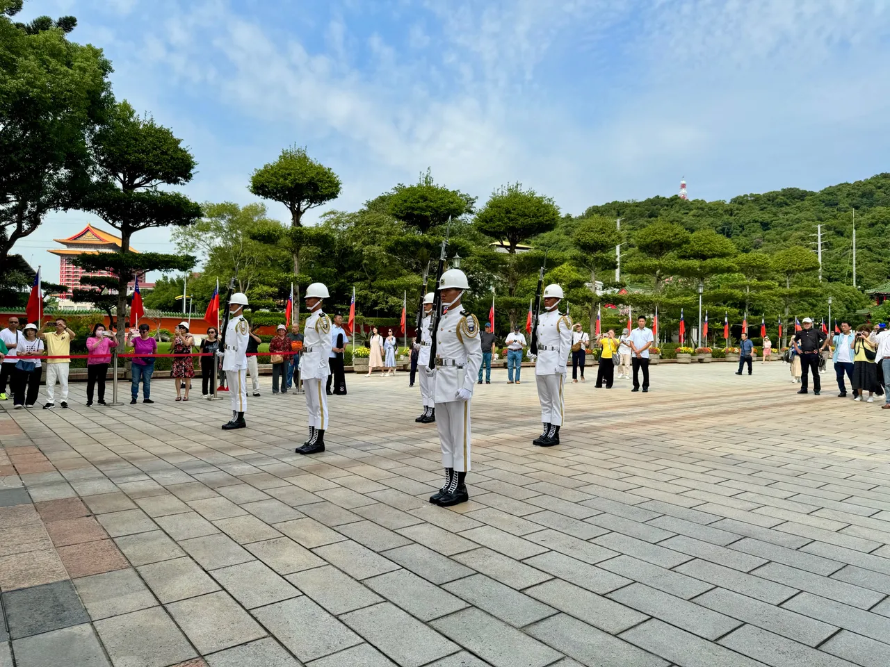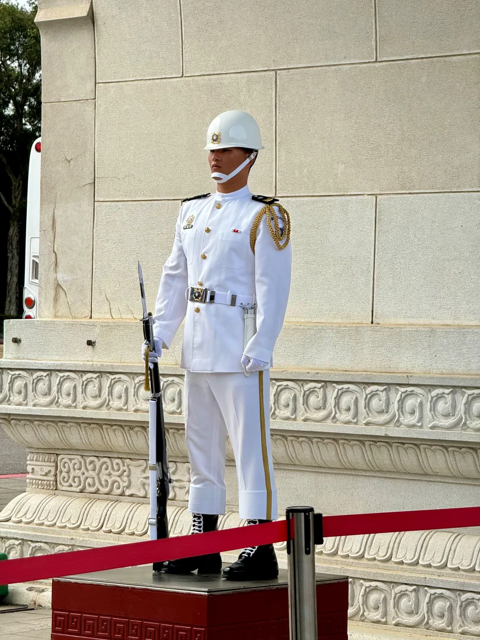 上一个景点「中正纪念堂」来迟了几分钟,没有观看到“卫兵交接仪式”感到好可惜,导游司机带我们去了下一个景点「忠烈祠」,说着这里也能看“卫兵交接仪式”。