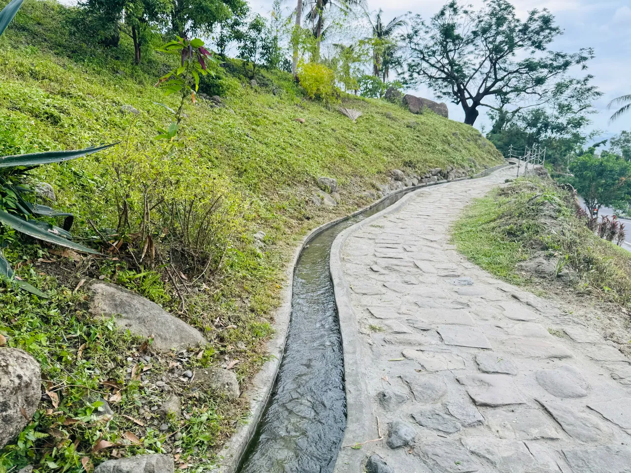 这是条神奇的小沟渠,我认真的蹲在那里看,沟渠里的水真的向上流动,好神奇!