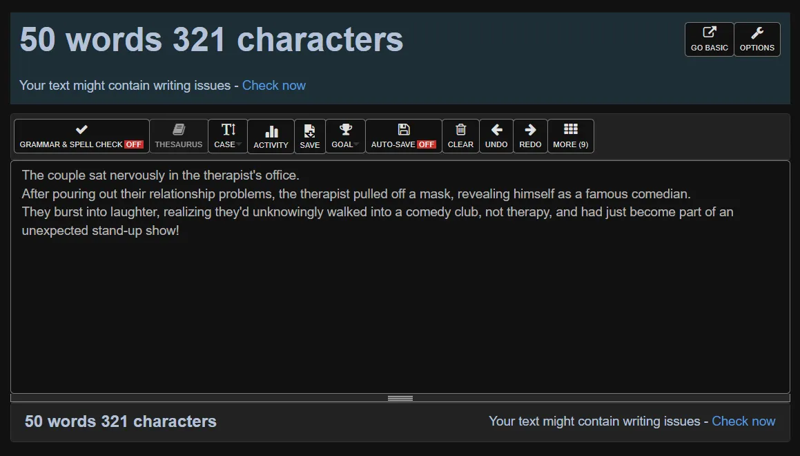 Stand-Up Comedy - A Short Story for the weekly writing contest ZapFic50Monday - Prompt: "Therapist"