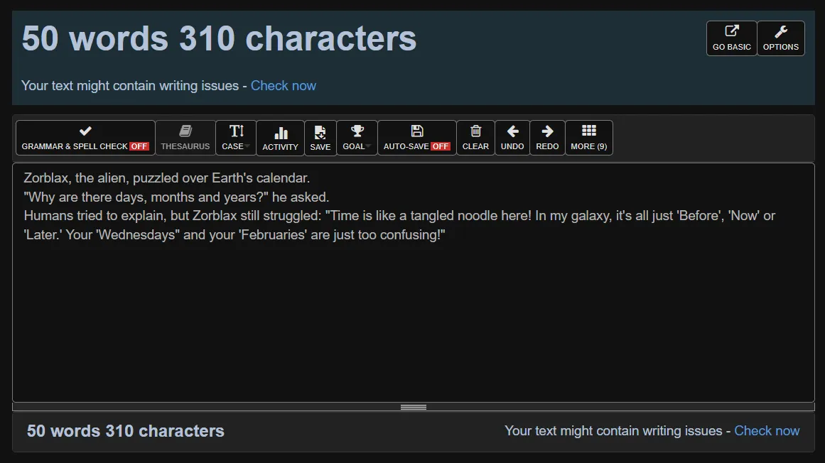 Humans tried to explain, but Zorblax still struggled: "Time is like a tangled noodle here! In my galaxy, it's all just 'Before', 'Now' or 'Later.' Your 'Wednesdays" and your 'Februaries' are just too confusing!"