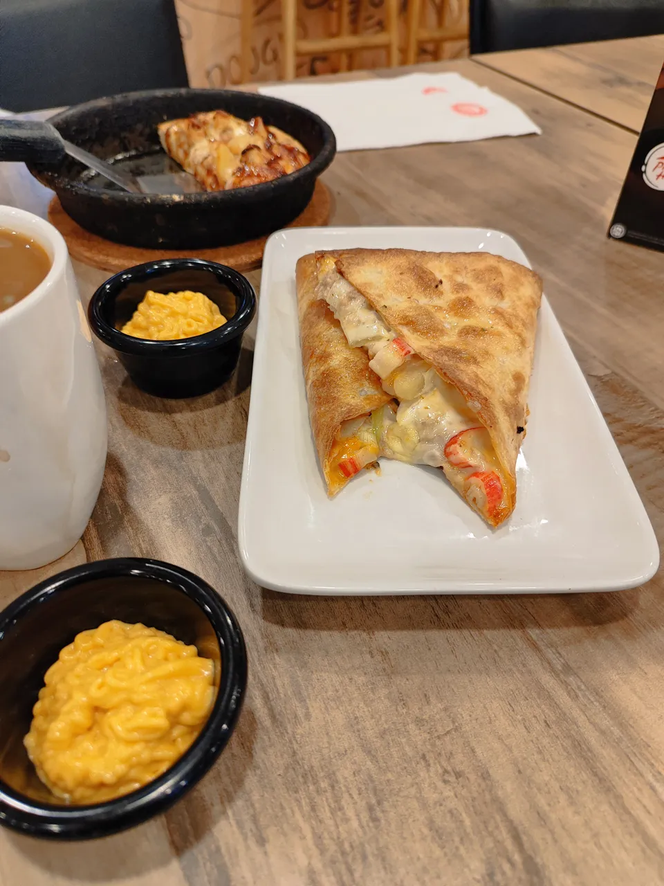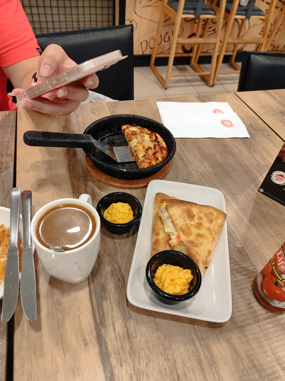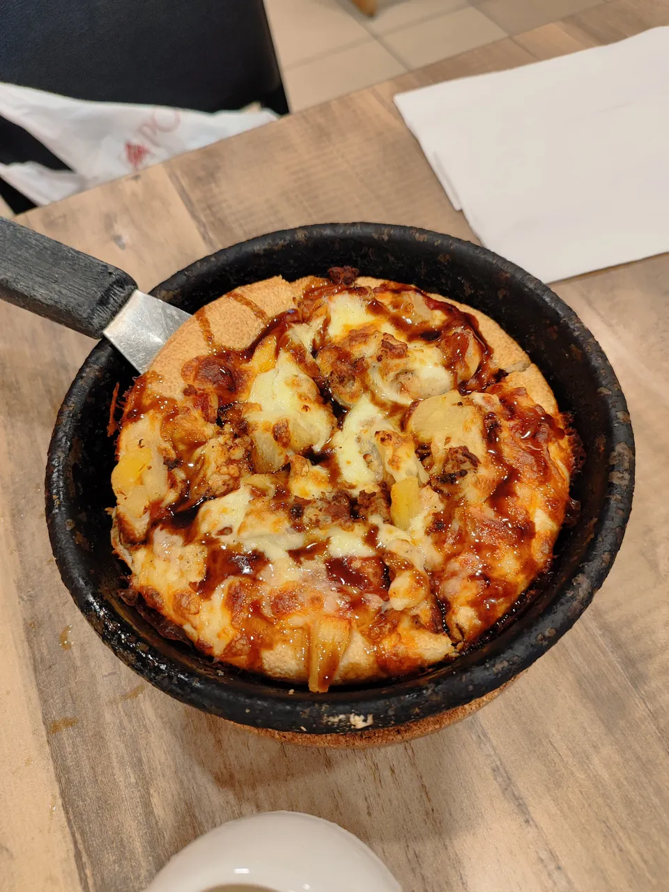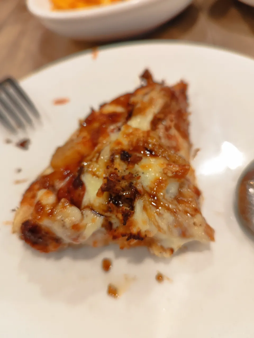 It taste like regular cheese pizza except that you put a thick sauce of cola flavouring. A bit on the sweet size. But why not? Since, it is from Pizza Hut.