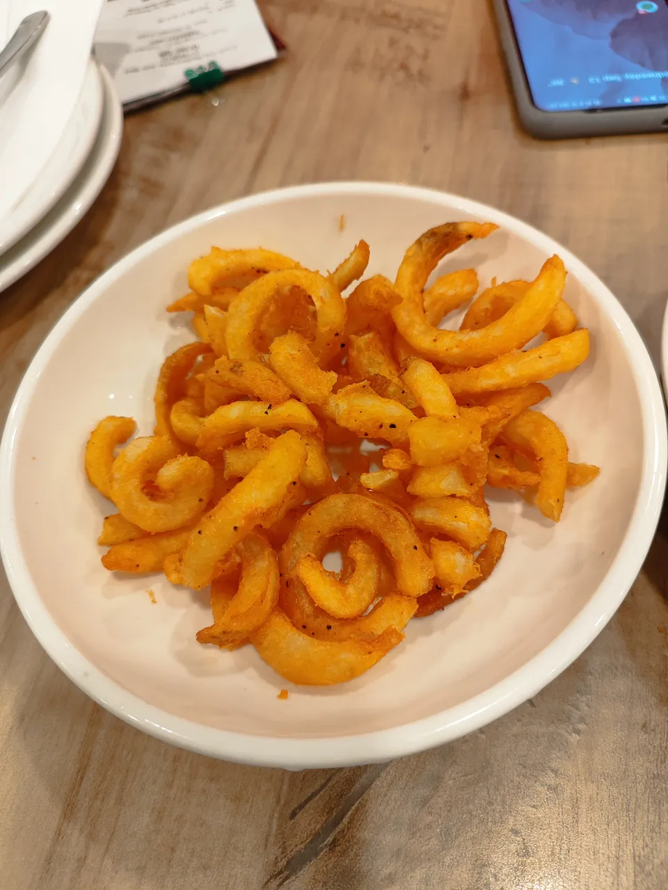 The curly fries. Yummy. I guess their curliness increases the surface area for the flavour to embed.