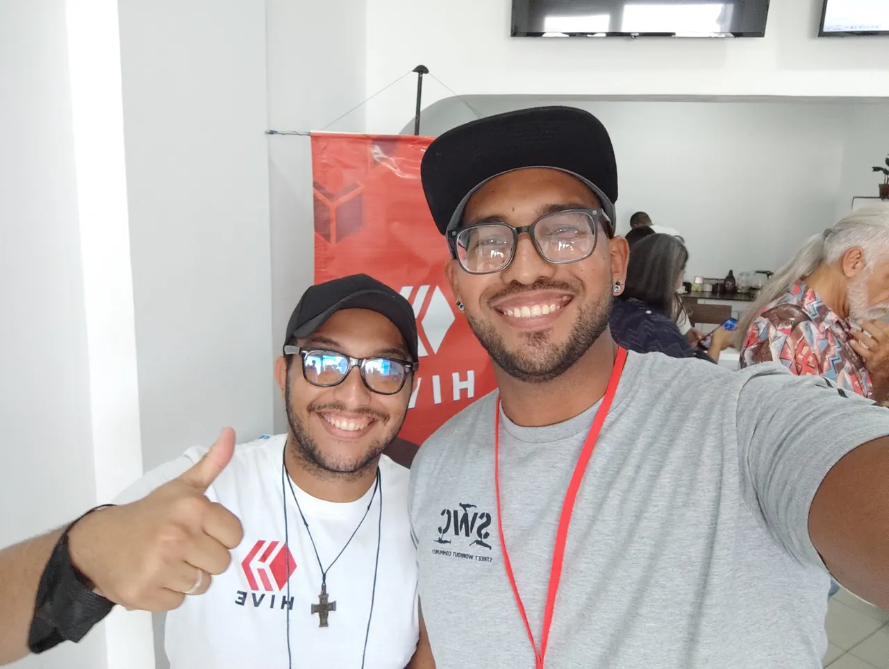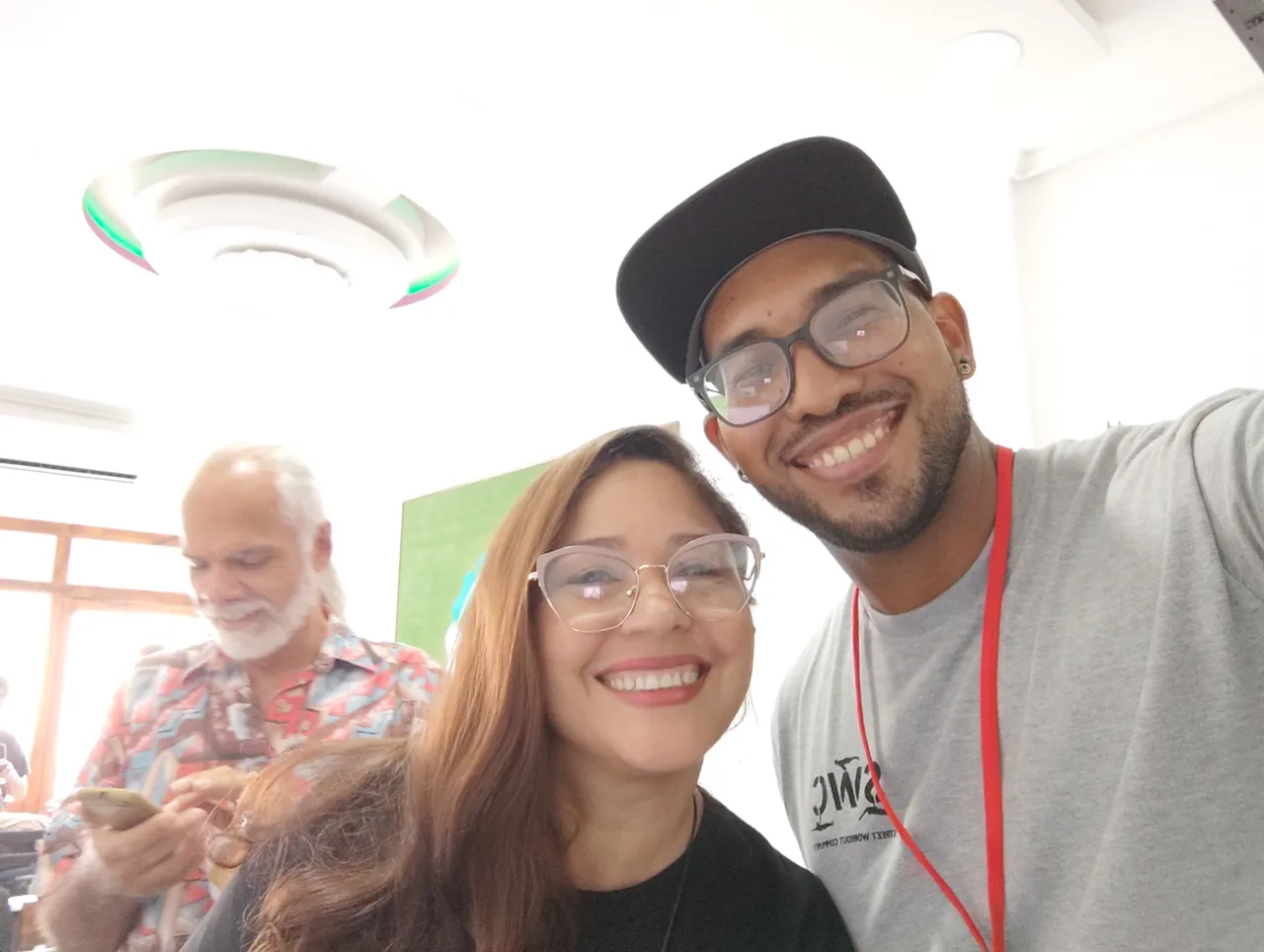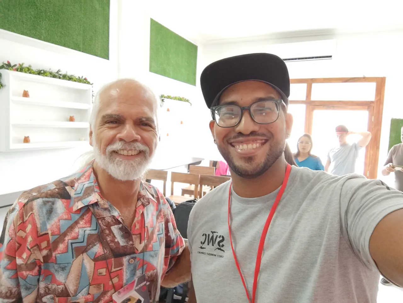 I was accompanied to the event by two of my moderators, two brilliant guys who I have great appreciation and admiration for the way they took HIVE in such a professional and dedicated way, these guys are Gabriel Arzola (@gaboarzola) and Milagro de la Rosa (@milagroscdlrr), they can't imagine how happy I was to see them there in that meeting surrounded by other Hivers.