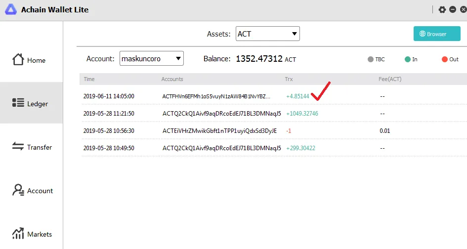 Ini contoh kiriman coin ACT yang sudah saya terima: