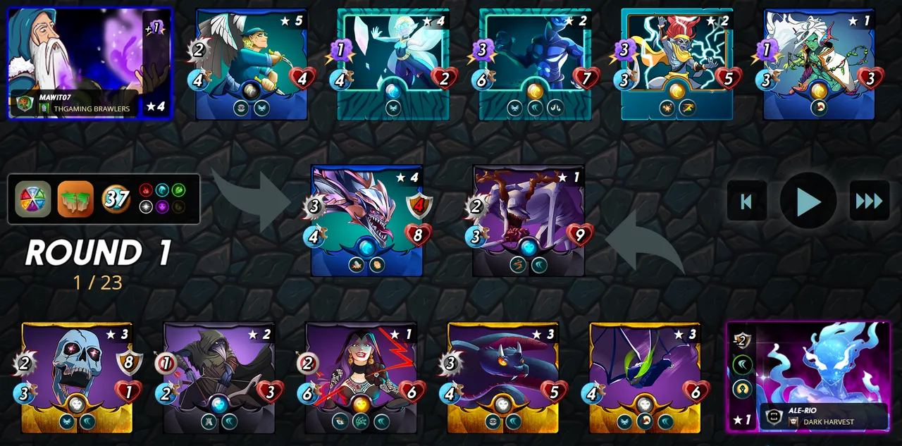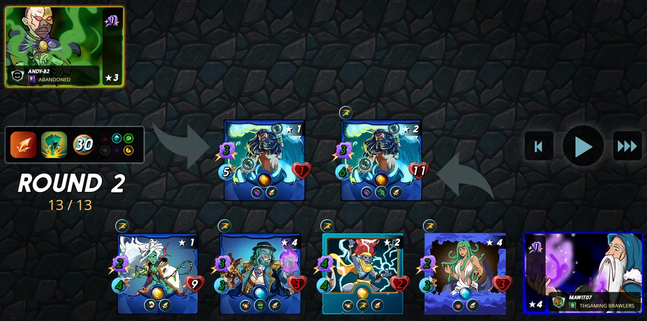 At the end of round one it is clear who was winning. With a six to two monsters I had total control of the match. With the luck that my Medusa and Lord of the Seas handling blows their returned attack were deadly. Then the interesting part here is that Musa Saline health that started at 3 turned into 7. It was clearly perfect to handle what is now the rear of my formation. The monster now had enough health to withstand almost any one big hit but of course that would not matter as majority of my monsters were ready for round two.
