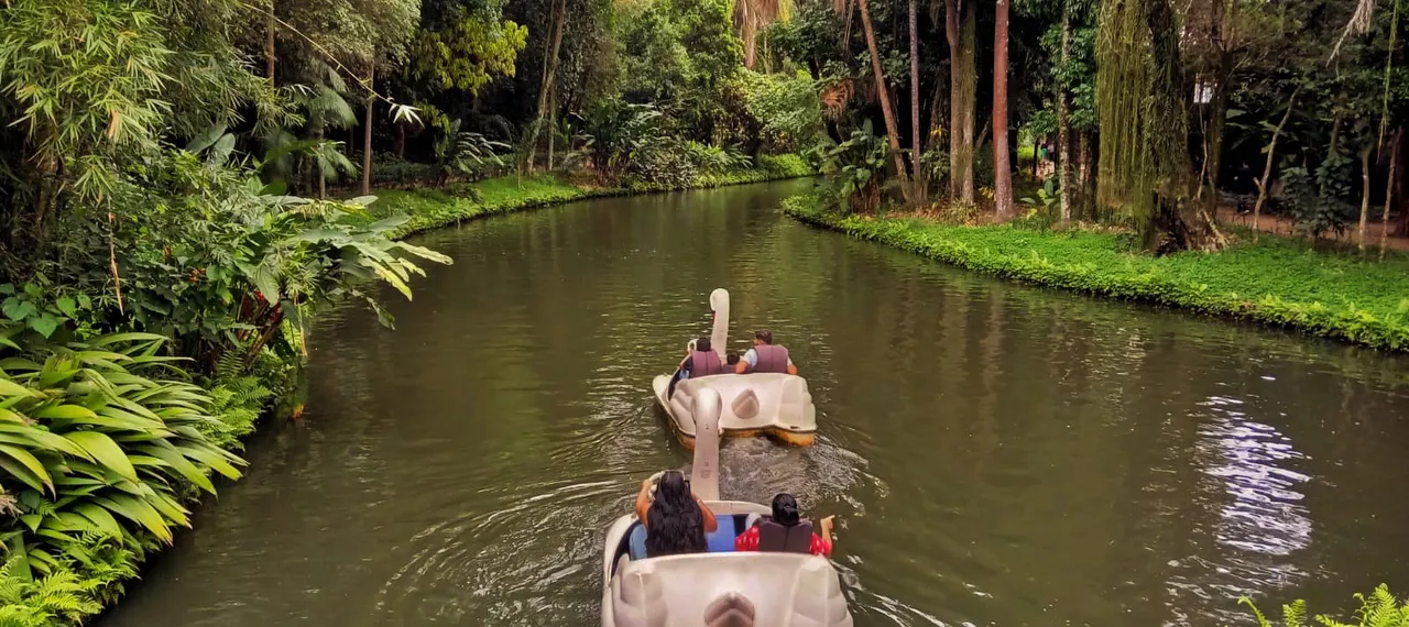 Mas, além desse momento relaxante, também tivemos nosso momento de aventura quando alugamos uma espécie de barco para navegar pela lagoa. Na verdade, não é um barco, é um barco em formato de cisne do qual precisamos pedalar para fazê-lo navegar. E a princípio, parecia que ia ser algo bem relaxante também, mas foi um bom exercício físico, já que precisamos pedalar incansavelmente para poder navegar pela extensão do lago.