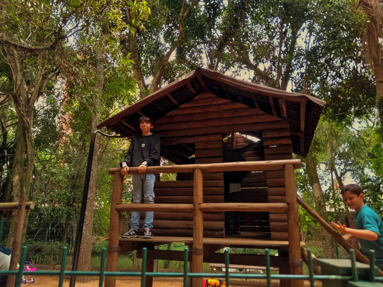 Por fim, encontramos um lugar bem legal para fazer um piquenique e relaxar. Andar por um bom tempo mais a aventura no pedalinho foi bem exaustivo. Mas meu filho ainda tinha muita energia para gastar e descobriu um parquinho bem ali próximo de onde estávamos. Como vocês sabem, crianças não podem ver um escorregador ou um balanço que já querem se divertir. Apesar de precisar de um descanso, eu fui até lá com Caleb.