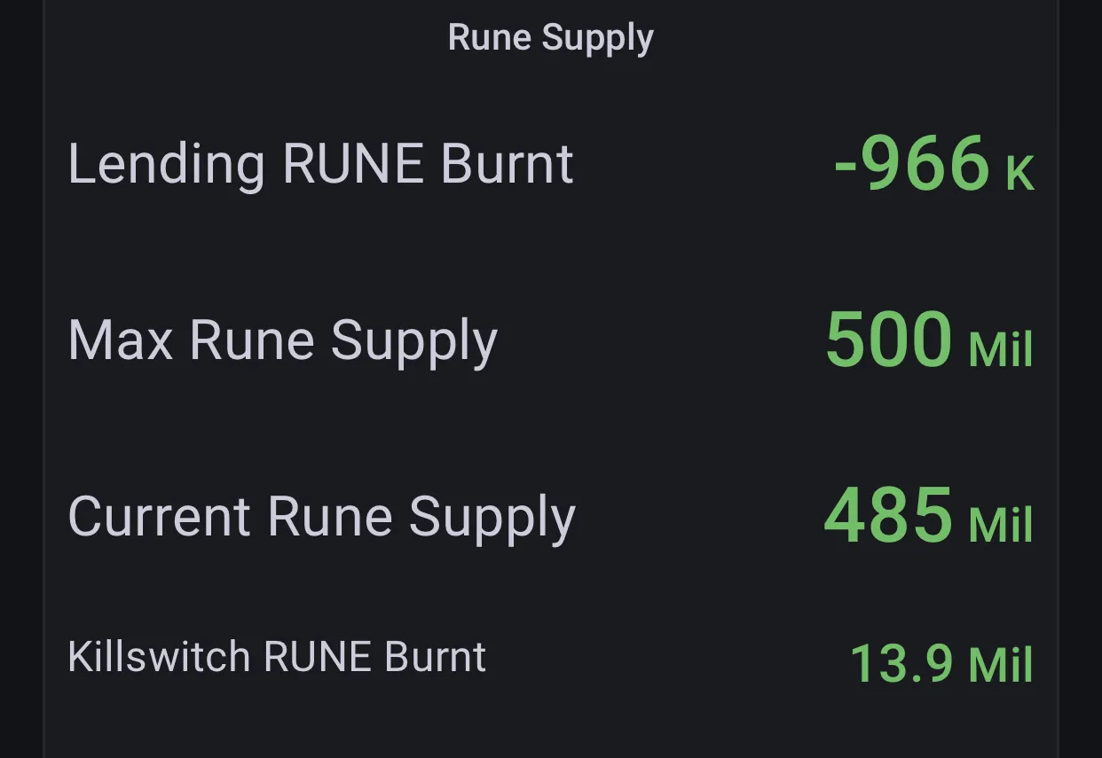 Conversely, closing a loan triggers the minting of $RUNE, reintroducing tokens into the supply. This intricate dance between burning and minting is a constant theme and holds substantial ramifications for the valuation of $RUNE.