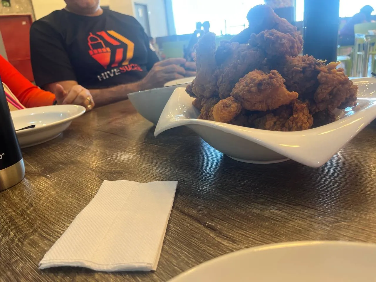 Desde mi gusto y mi paladar, este lugar tiene uno de los mejores y si no es acaso, el mejor pollo de toda cumaná, porque en sabor, textura, carne y servicio, les gana a muchos, que inclusive se encuentran en el mismo lugar. Sinceramente me pone feliz porque este establecimiento es muy bueno, siempre que tengo la oportunidad de ir me han atendido muy bien y solo puedo rescatar cositas buenas de acá, por ejemplo una de las cosas que me gustan de ellos es que son muy claros a la hora de ofrecerte sus platillos, mas que todo en el tiempo de espera, porque entienden que hay clientes que desean la comida un poco mas pronto que otros, pero a veces no conseguimos con el mal trago de algunos locales que no te dicen tiempo y solo te cobran por el interés de vender, y lo que te ofrece olivas aparte de un buen servicios, es credibilidad y confianza junto a una excelente comida.