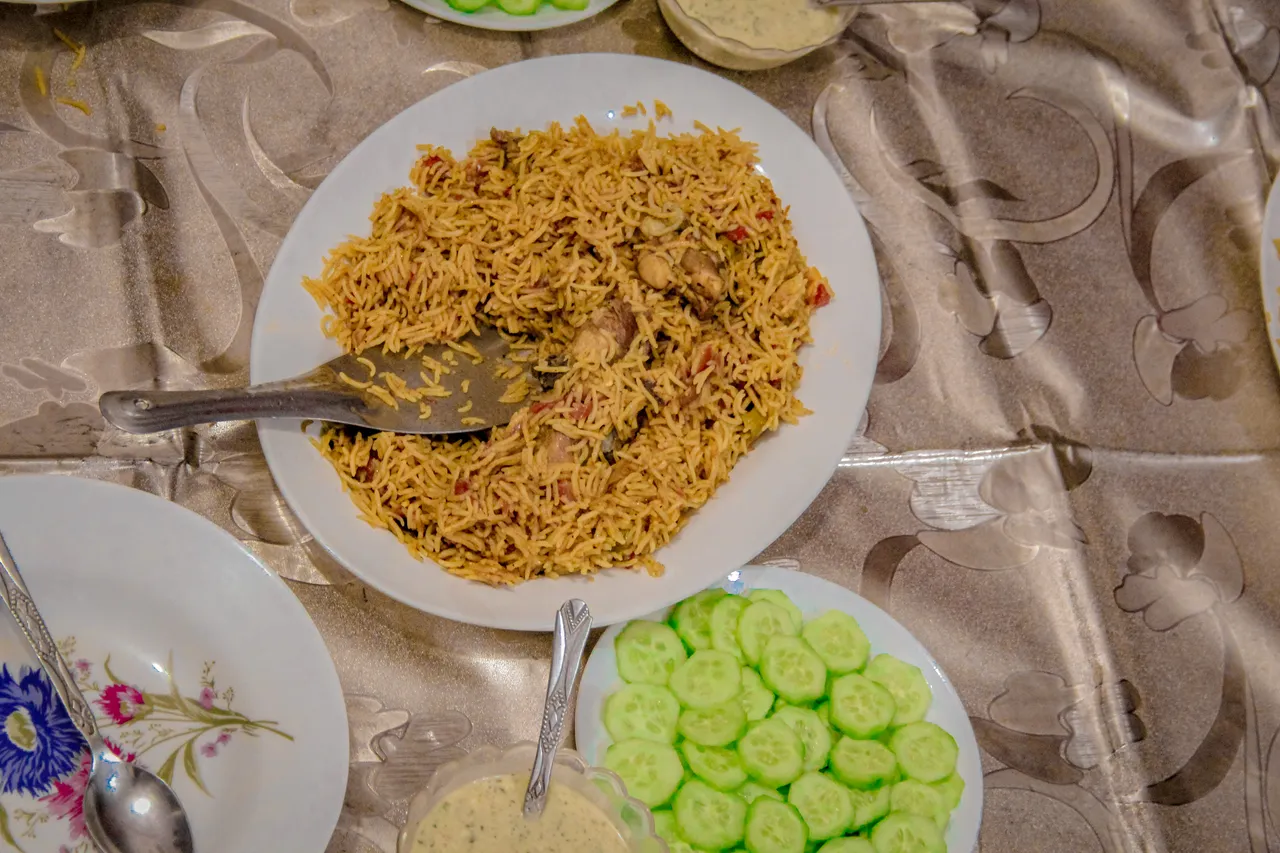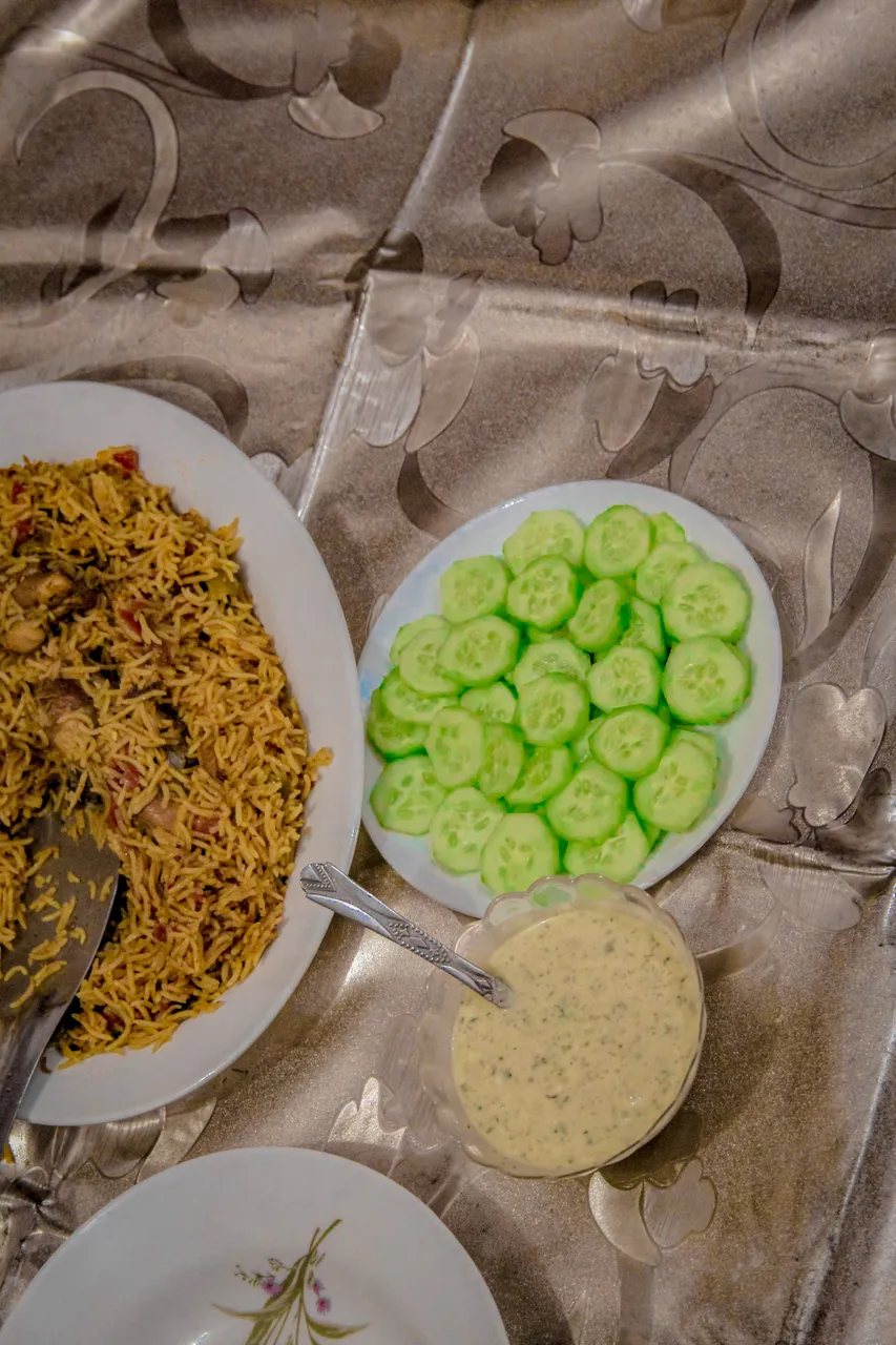Hello food lovers, I hope everything is going well and good. Yesterday night I invited 2 of my friends for dinner at my home. I told my mother to cook "Biryani" for them. Biryani is basically our traditional food, it's taste is really delicious. In food items, my favorite one is biryani so that is the reason I told my mother to cook it for my friends too. I brought all the necessary items for biryani like chiken, tomatoes, and etc. at day time. I also brought yogurt and cucumber because it tastes good with biryani.