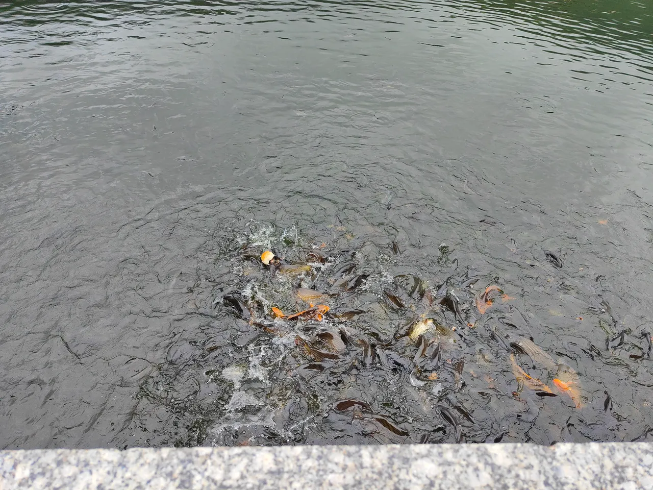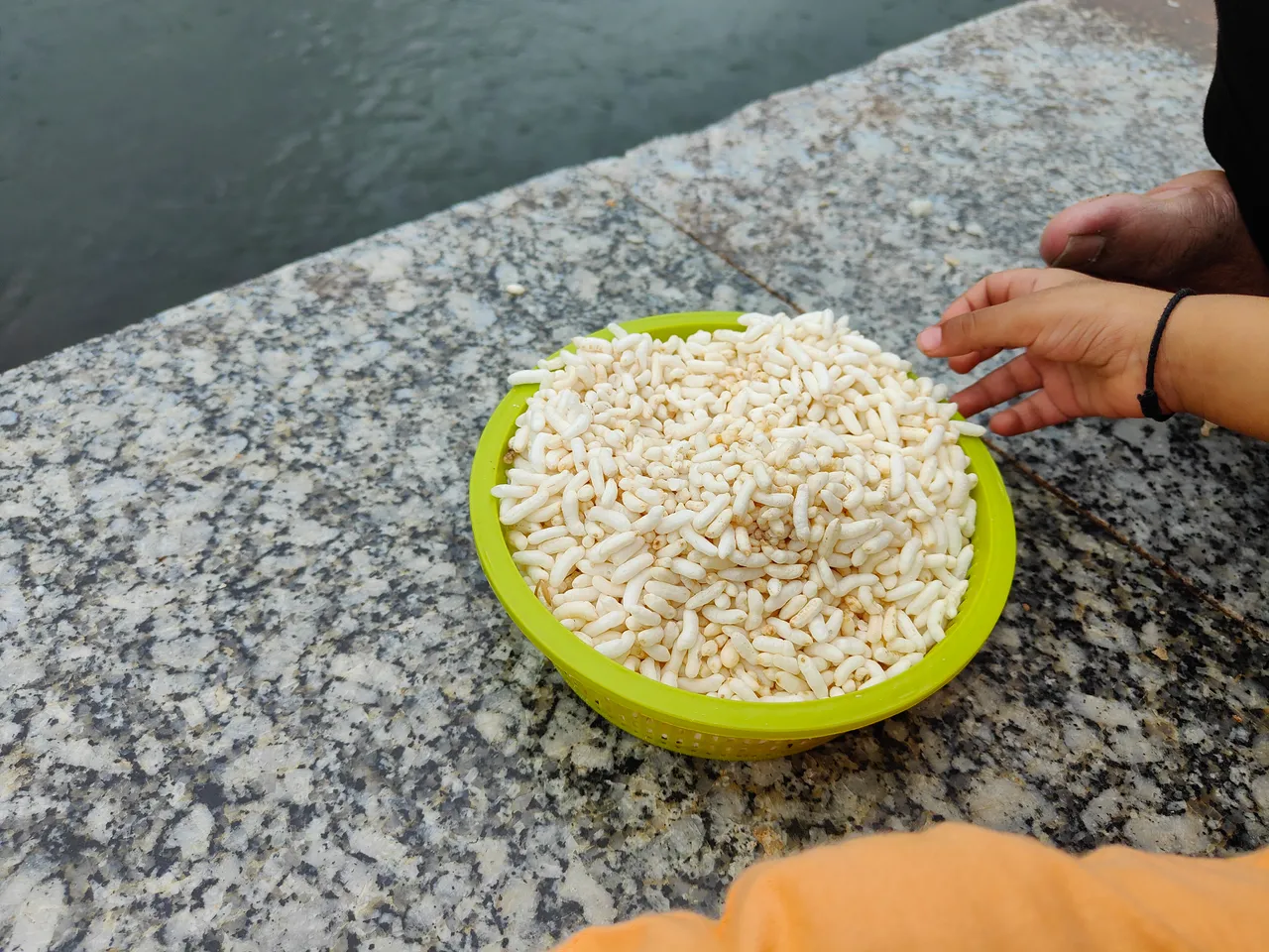 There was lots of fish in the Pond , many sellers sell their food. We buy murmura and pav and gave them to fish. My baby enjoyed this activity so much.