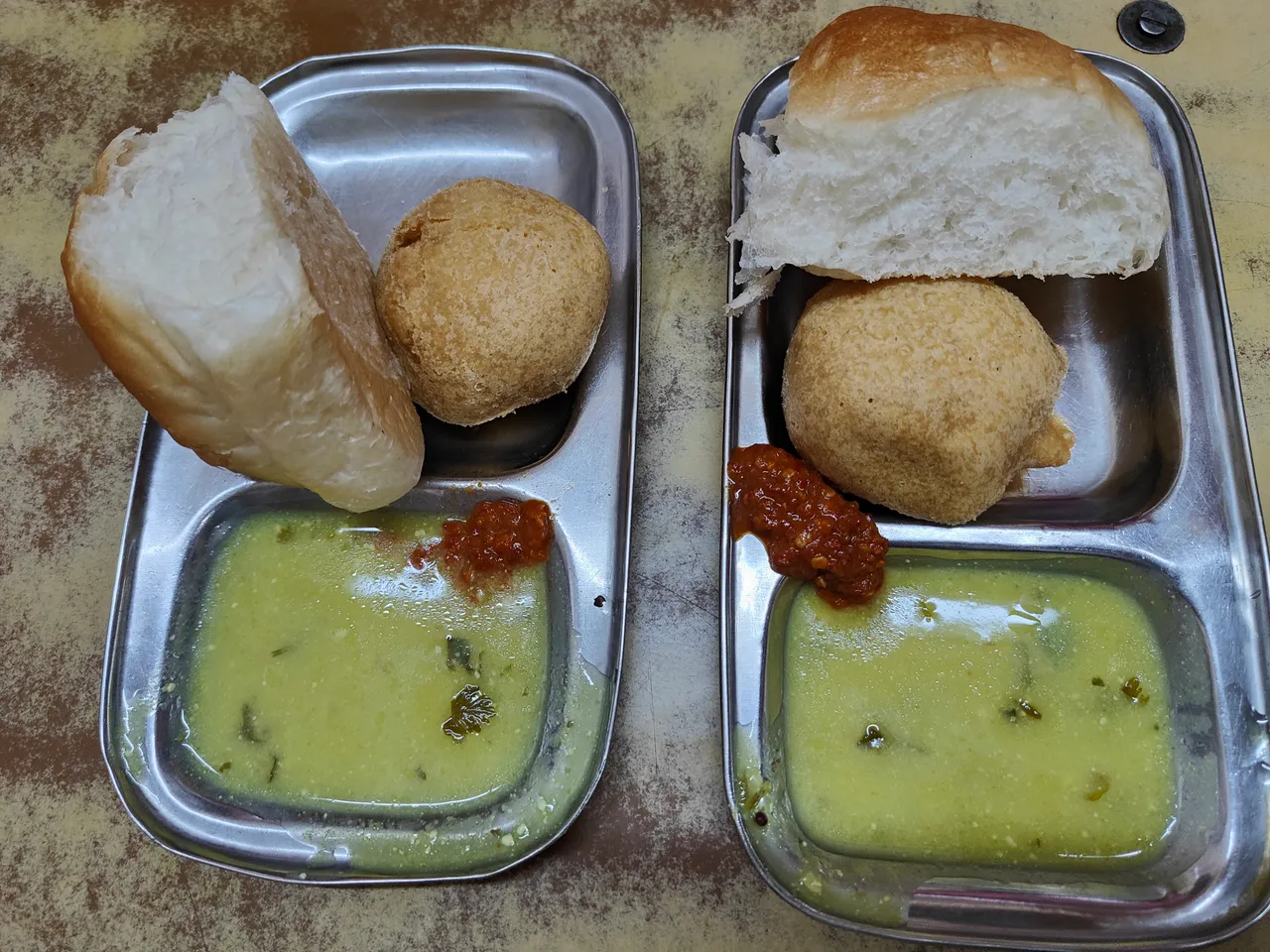 After taking bath at kushavarta tirtha , i feel so hungry, i went to a shop and enjoyed these maharshtra famous food Vada pav and pav bada 😋
