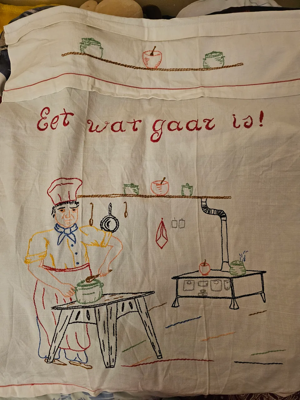 The last time I found such an embroidered picture among the embroidered things. I thought it was very cute and I bought it for my kitchen in the village.