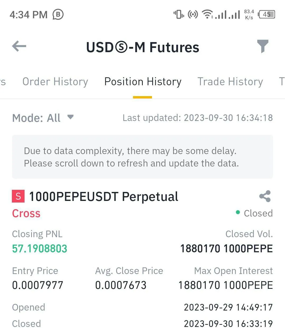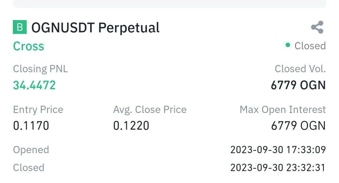 My last Trade ( short sell )