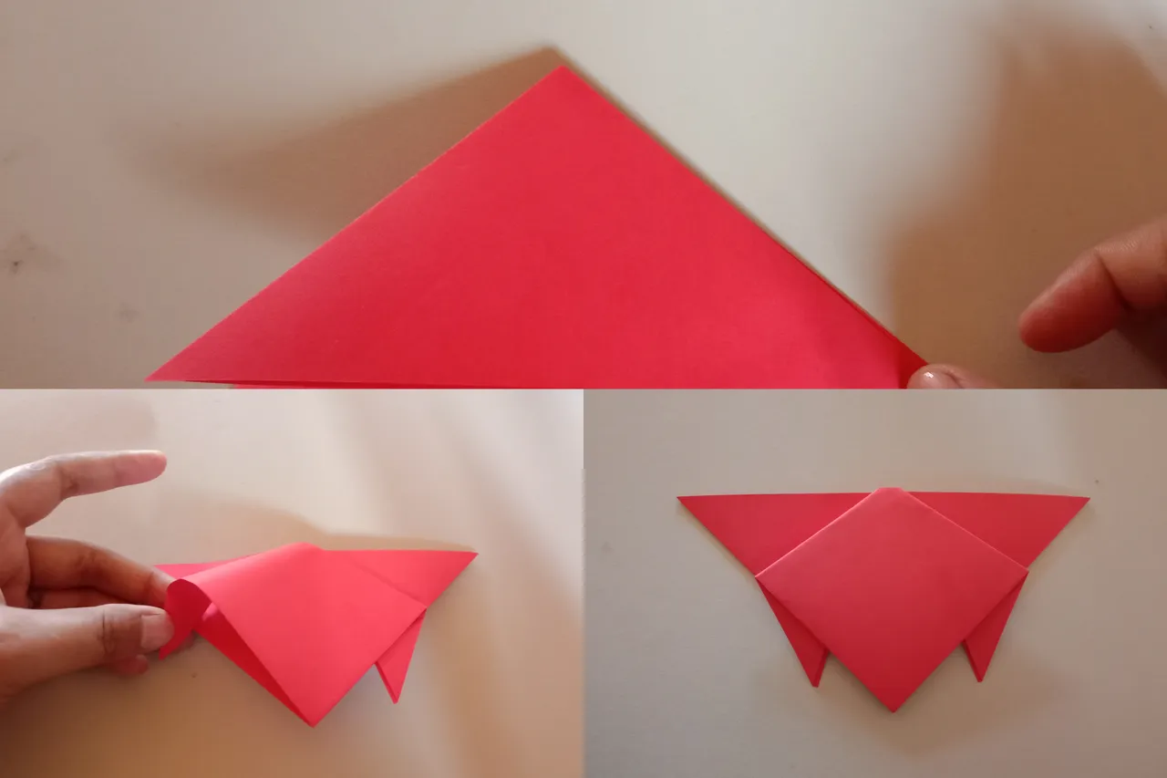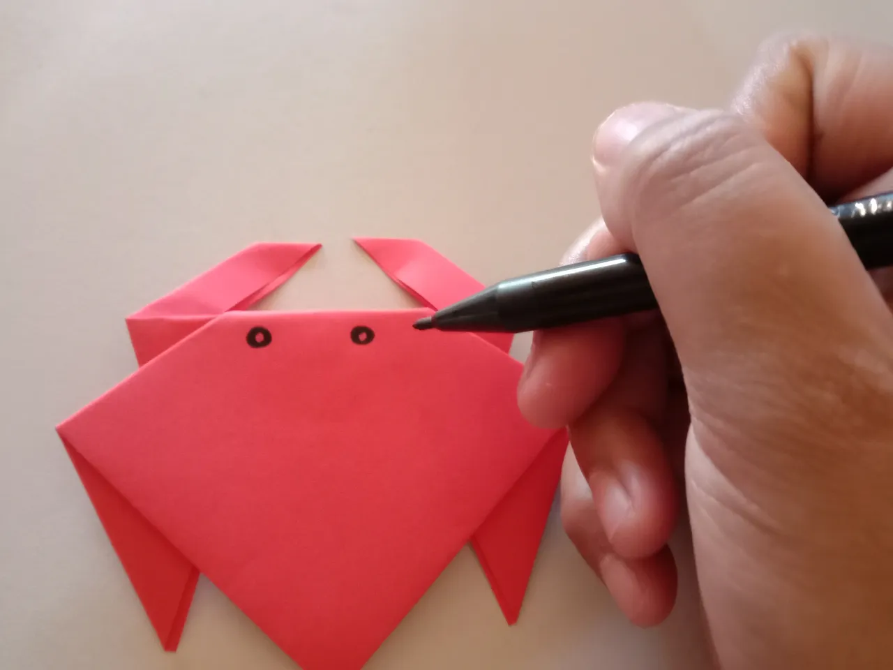 ✔️ Then take the top part of the paper and fold it inward, to make crab legs, do the left side Also.