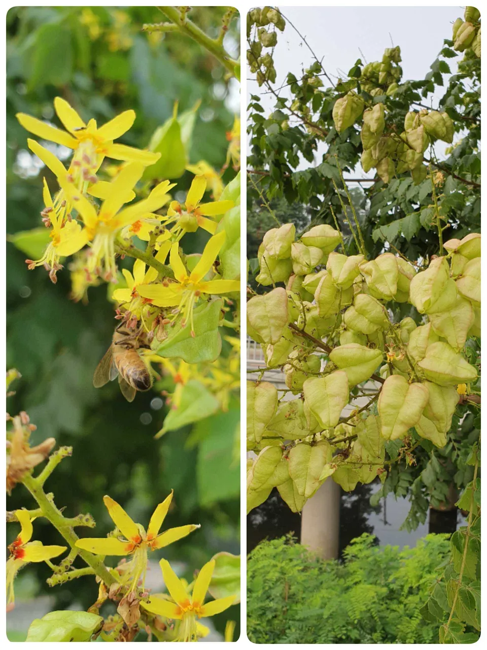 과천 선바위 인근을 흐르는 양재천 뚝방길에는 몇일전 황금색 모감주나무꽃이 만개했는데요.(사진왼쪽).