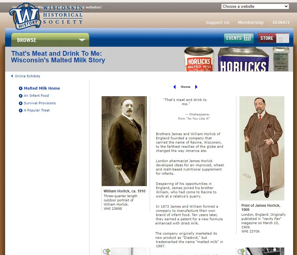 Es bueno que, al buscar un poco la historia de esta bebida, me topara con el sitio de la Sociedad Histórica de Wisconsin, y me proporcionara un buen resumen, pues en algunas webs que consultaba para redactar este post, le habían traducido el nombre de James como ‘Guillermo’, y eso de traducir nombres propios es algo que no me agrada. Puedes ver el sitio de la Sociedad que comento en: https://www.wisconsinhistory.org/museum/exhibits/horlicks/