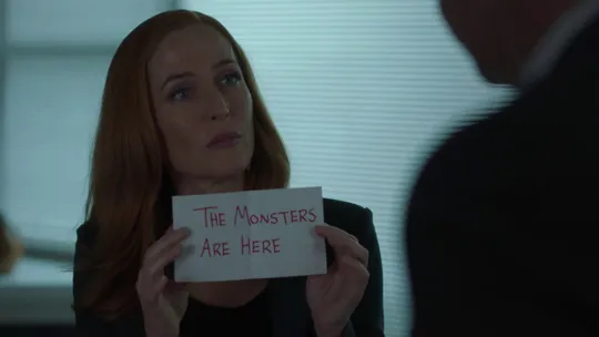 Recuerdo que disfrutaba la serie, en parte por su abordaje de algunas teorías de la conspiración bastante llamativas, incluso algunas muy paranoicas, con un cierto toque como de comedia ‘Gótica’ (o novela de este mismo estilo literario), en la que siempre había un toque de suspenso, e incluso en los momentos más tranquilos, sentías que había algo de fondo que no estabas captando. Daba siempre la idea tácita de que había ‘monstruos’ (humanos o no), y que el hecho de que no los vieras era incluso más preocupante a que se mostraran, pues una amenaza oculta bajo tu sombra siempre es un riesgo, un peligro del que no sabes nada y por eso no puedes prepararte de ninguna manera para afrontarlo.