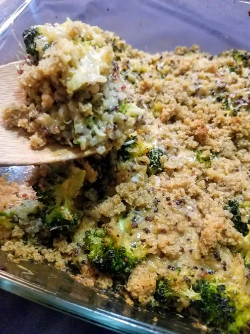 This yummy casserole turned out to be better than expected. The cheesy quinoa turns velvety smooth in the oven, and roasted broccoli offers a sweet undertone once it caramelizes. It manages to be comfort food, while also providing you with necessary nutrients. And because it’s a gooey, delicious casserole, it’s a great way to disguise broccoli and quinoa for those picky eaters who only really like mac and cheese.