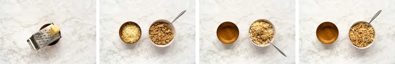 - Grate the cheese of your choice (if using). Mix the tofu mixture with the cheese. You can skip the cheese here as well and simply not use it.