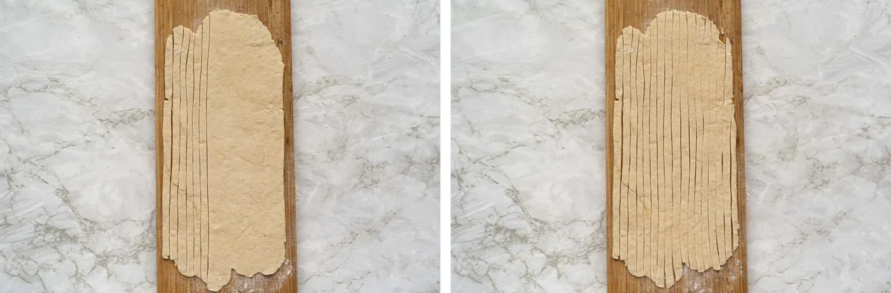 Cut it into about 0,5 cm. or less wide stripes. The length of the stripes was about 30-40 cm.