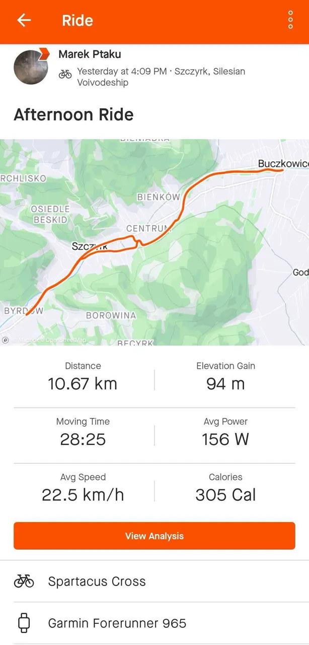 Z rzeczy wartych zapamiętania wspomnę jeszcze o krótkim, ale dość mocnym treningu rowerowym.