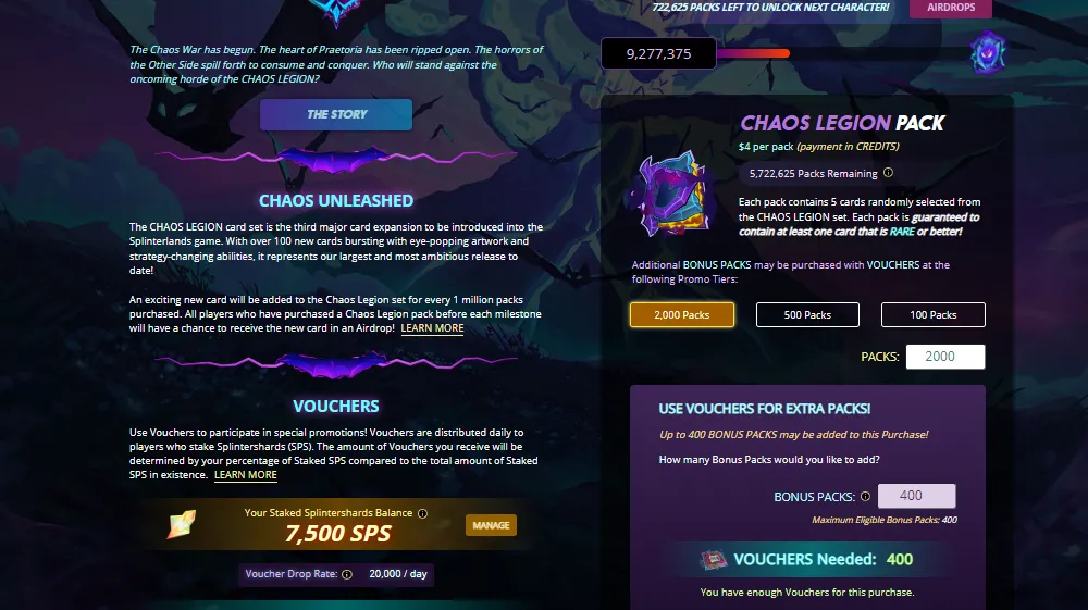 I purchased 2000 CHAOS pack that made be eligible for 400 Bonus packs and one of the reason I went for 2400 packs because it make 2400 packs eligible for the airdrop and next airdrop will be of the CHAOS summoners and 2400 packs might help in getting more number of summoners getting airdropped to me.