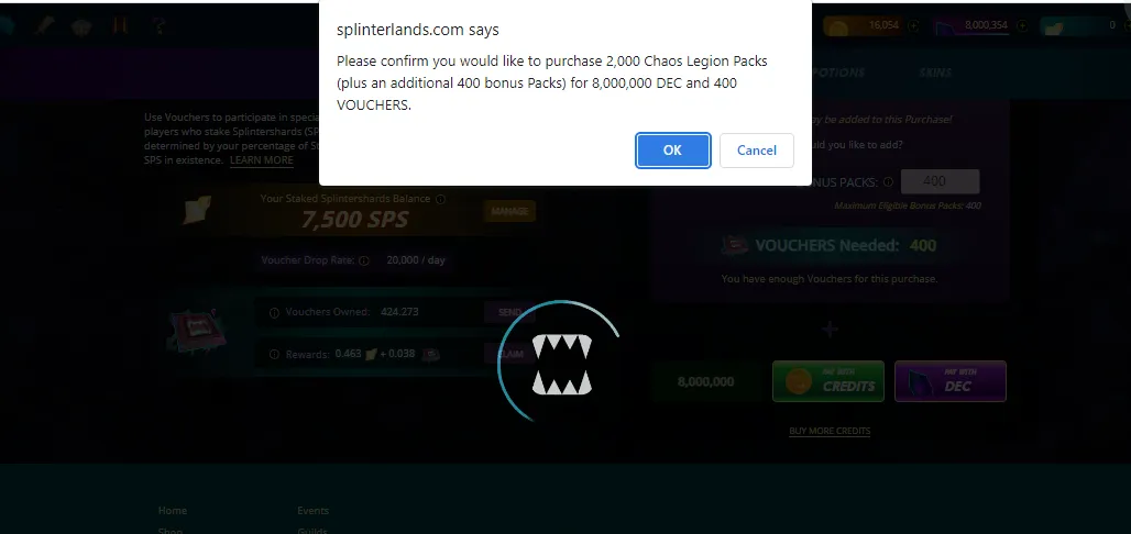 Splinterlands : Buying CHAOS packs and analyzing using Peakmonsters.