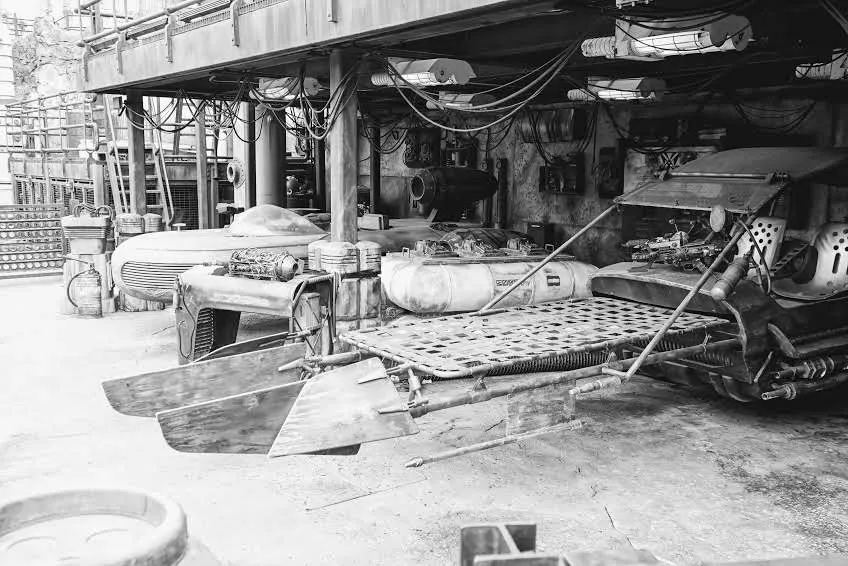 This is a replica of the original speeder Luke Skywalker drove in A New Hope. It's black and white to add drama to the age and significance of the subject.