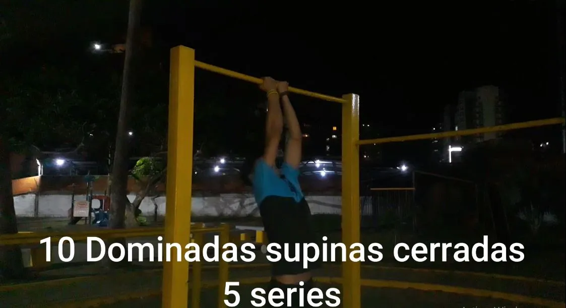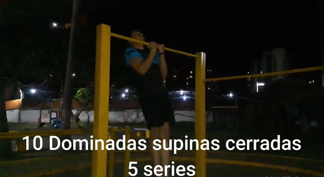 Consiste en realizar una dominada abierta en agarre supina, en este ejercicio se trabaja la fuerza de la espalda y se fortalecerá el biceps.