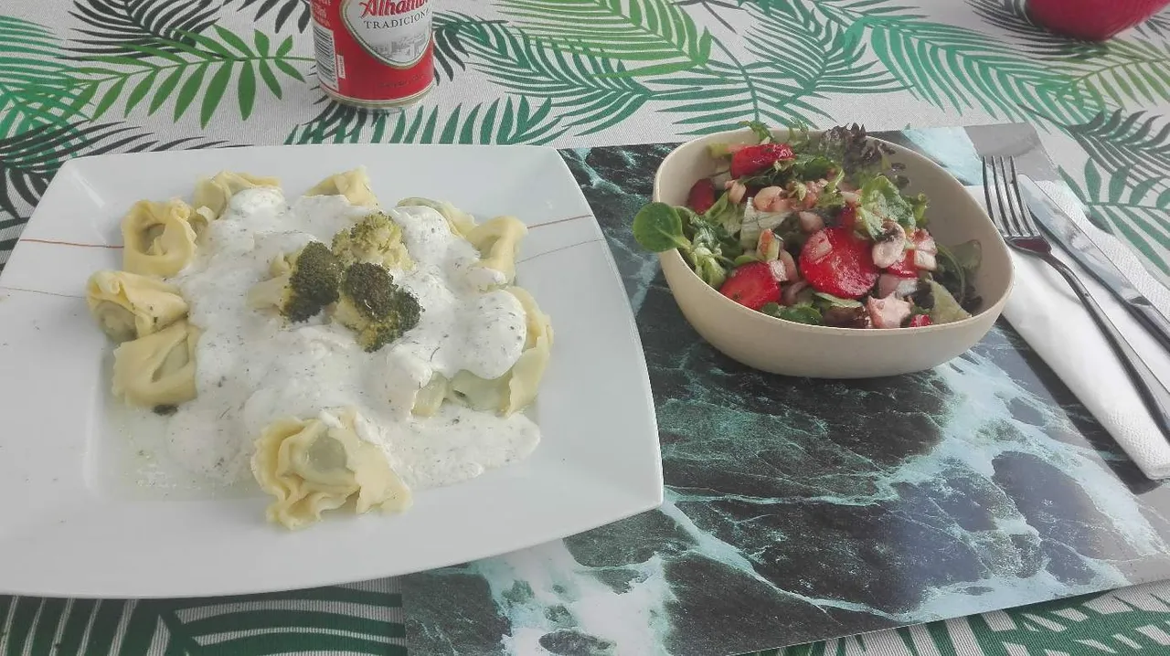 Os puedo prometer que la ensalada estaba espectacular, nunca la había comido con fresas, le da un toque único, ese sabor agridulce que se mezcla en el paladar y te trasporta a un mundo se sensaciones.