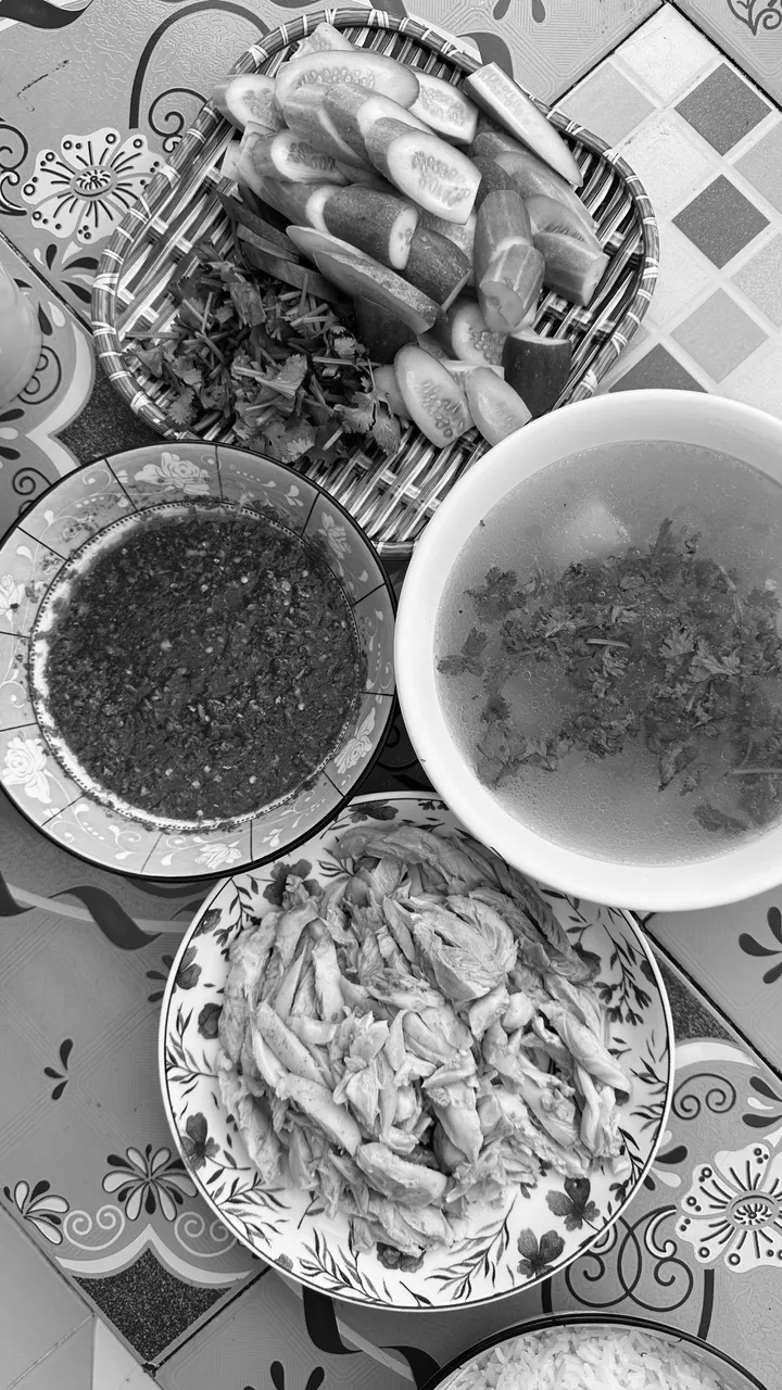 And is time for dinner. This the dinner i prepapre for the family. Thai style chicken rice. Is it look kinda weird in B&W for food? Or maybe i'm not use to it.