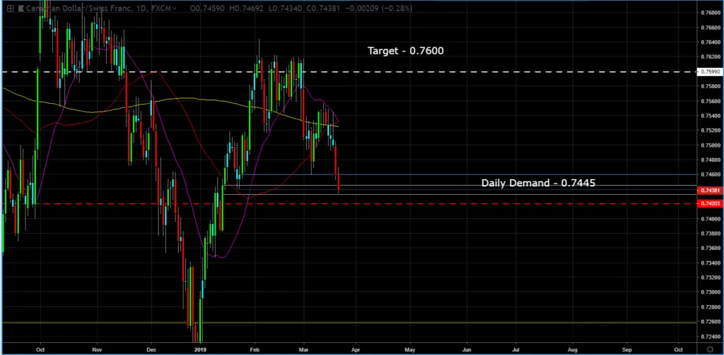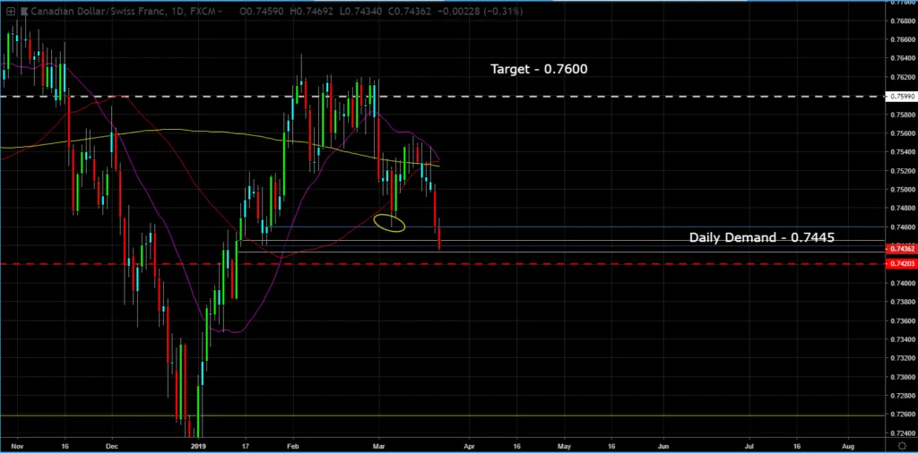 The Canadian dollar is weak, the Swiss Franc is a safen haven if the Markets start to turn. Also the Canadian dollar isn't correlated with oil right now. So based on fundamentals, I shouldn't have taken the trade. Technically, I could say the same.