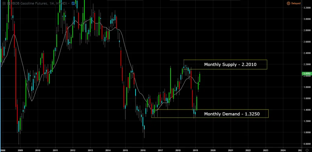 Monthly Chart (Curve Time Frame) - monthly supply is 2.2010 and monthly demand is 1.3250.