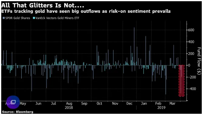A week ago investors were yanking money out of gold exchange-traded funds as hints of improving global growth and surging stocks lure them into riskier assets. The largest fund in the space, the $32 billion SPDR Gold Shares fund, or GLD, lost more than $671 million of assets this week.