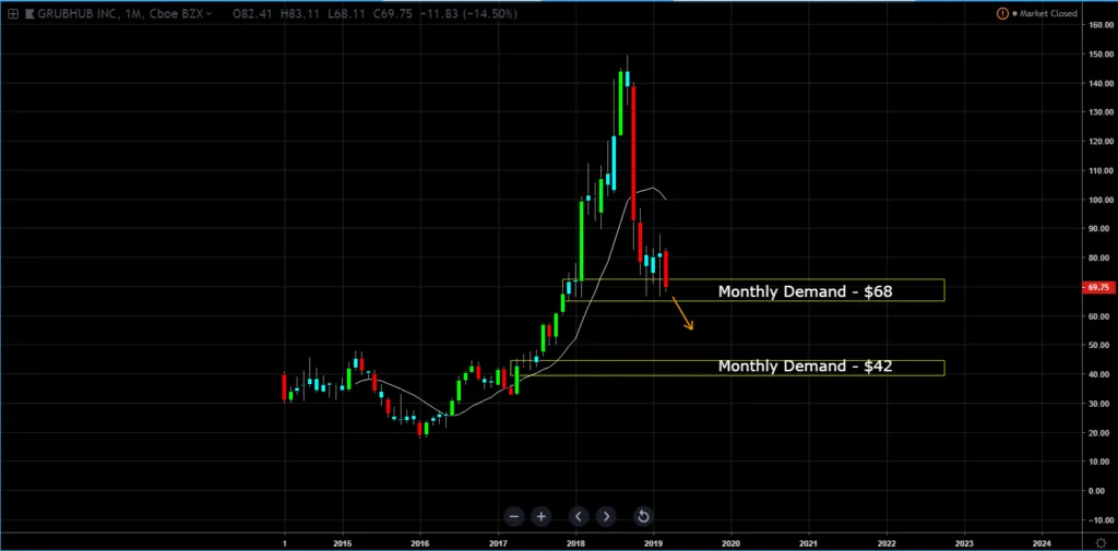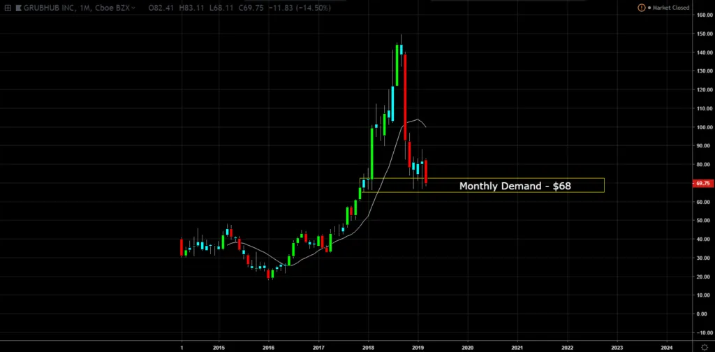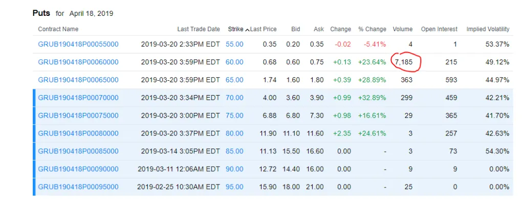 The Smart Money wants a piece of the action as well. With the stock price already down 10% in 2019, yesterday, I noticed bearish unusual options activity in GrubHub. The Smart Money bought over 7,000 put options with a strike $60 strike price that expire in four weeks.